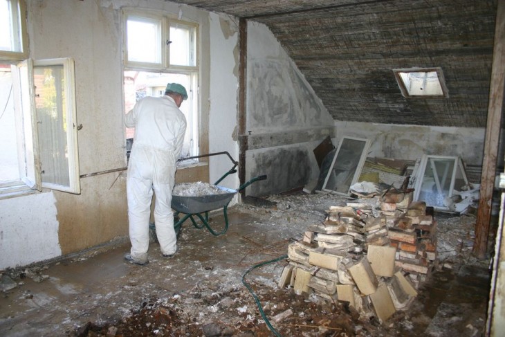 Die Renovation des Farbenhauses entpuppte sich als Zwiebelschale. Wurde eine Schale abgetragen, wurde eine andere sichtbar. Hier gibt es einige anregende Fotos: