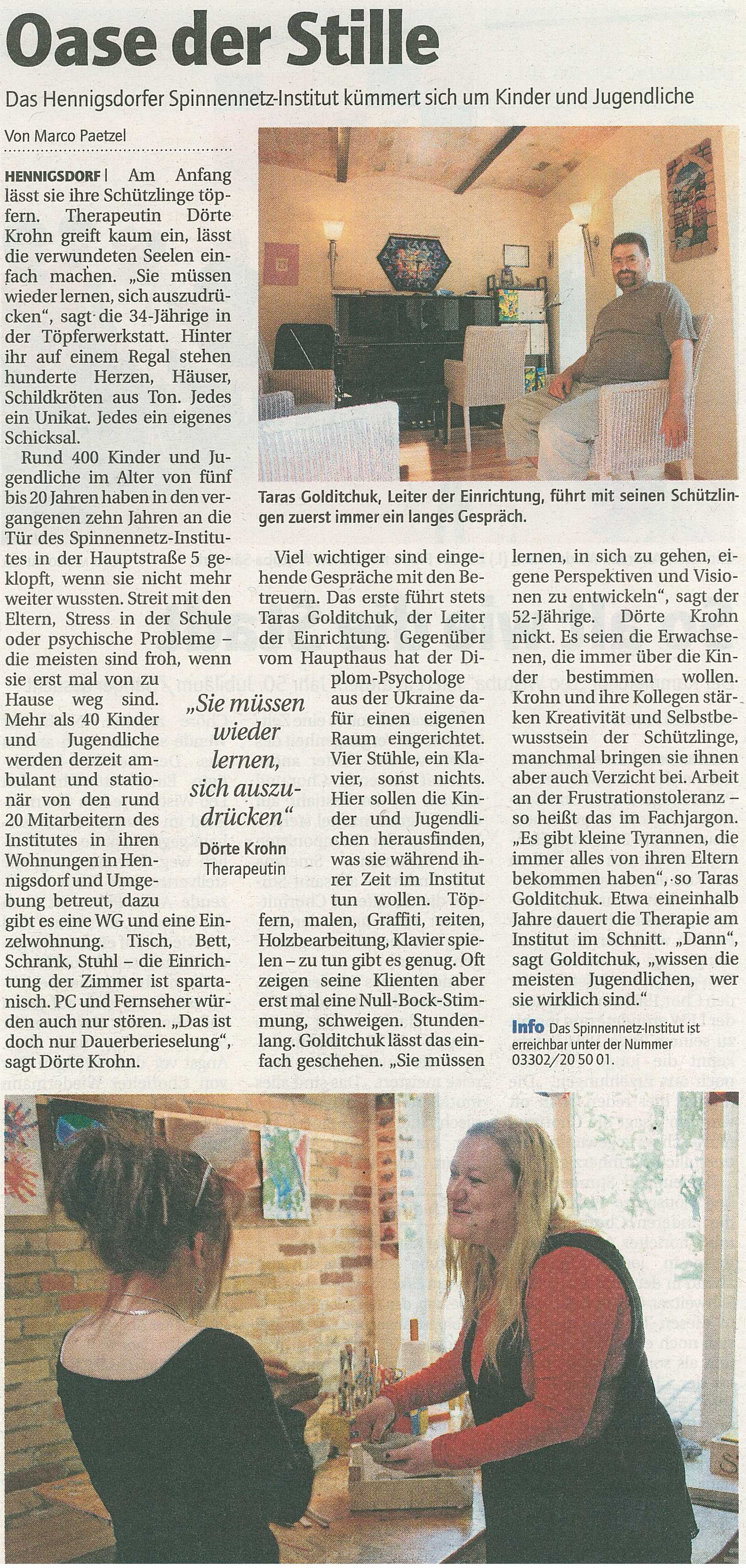 Das Hennigsdorfer Spinnennetz-Institut kümmert sich um Kinder und Jugendliche